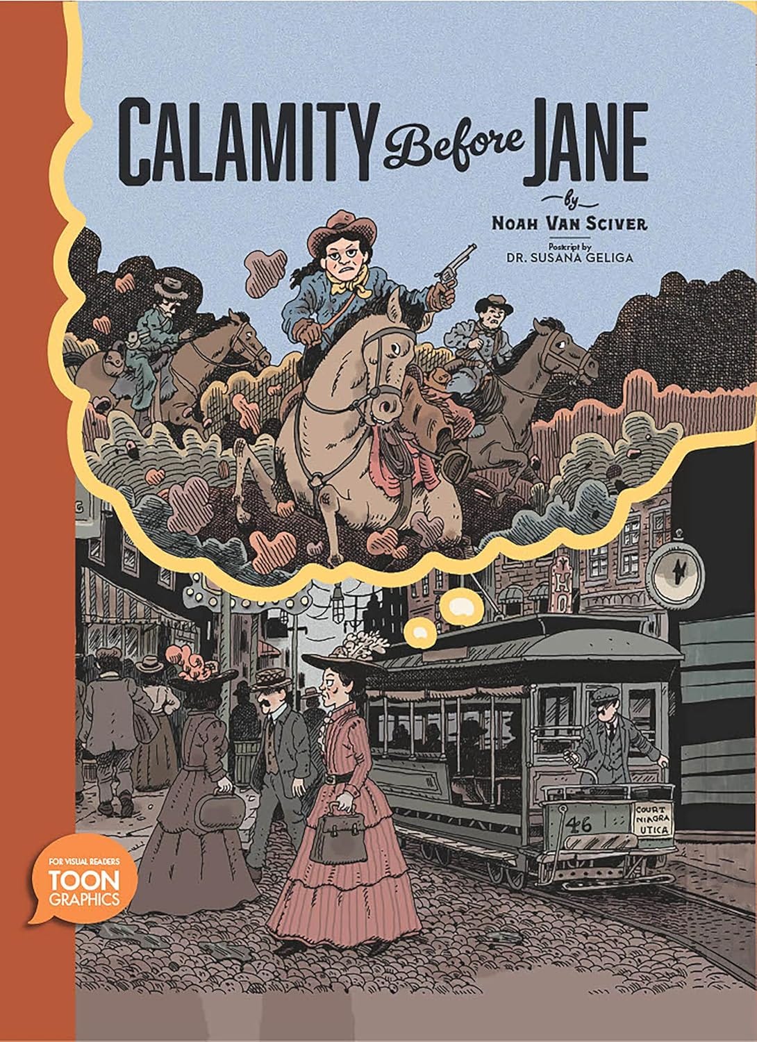 Mix of truth and whoppers or not, Jane’s vivid storytelling made her a legend. And in the fun, lively Calamity Before Jane, written and illustrated by Noah Van Sciver, you can see why.