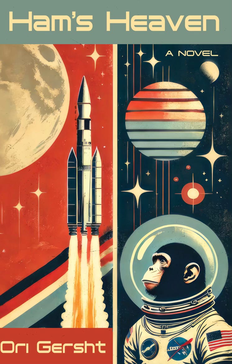 As revealed in Ori Gersht’s poignant novel Ham’s Heaven, the chimp’s heavenly excursion was anything but. Training for the flight, the French-Cameroon-born Ham endured electric shocks when he didn’t handle the levers right. To monitor Ham’s vital signs during the 16-minute, 157-mile-altitude voyage, scientists not only stuck physiological sensors on him, but jammed an eight-inch probe up his rectum.